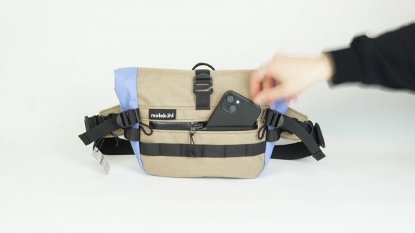 Rolltop Hipbag – „Mary“ (Cordura beige + X-Pac bluebell)