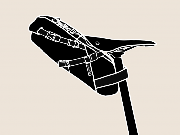 Befestigt wird die Tasche unterhalb des Sattels durch Einfädeln ins Gestänge + an der Sattelstange mit Klettstrap.